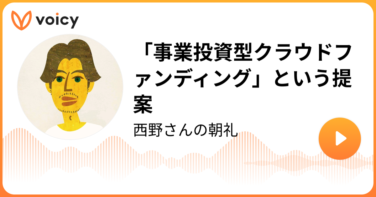 「事業投資型クラウドファンディング」という提案 | 西野亮廣(キングコング)「西野さんの朝礼」/ Voicy - 音声プラットフォーム