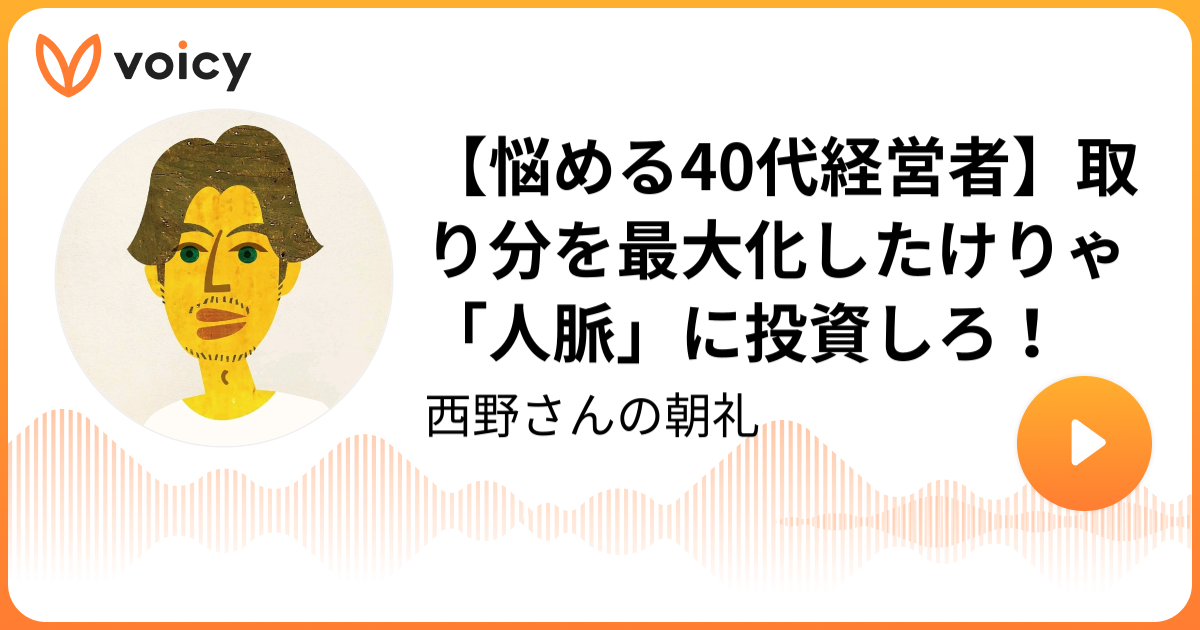 【悩める40代経営者】取り分を最大化したけりゃ「人脈」に投資しろ! | 西野亮廣(キングコング)「西野さんの朝礼」/ Voicy - 音声プラットフォーム