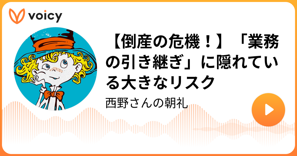 【倒産の危機!】「業務の引き継ぎ」に隠れている大きなリスク | 西野亮廣(キングコング)「西野さんの朝礼」/ Voicy - 音声プラットフォーム