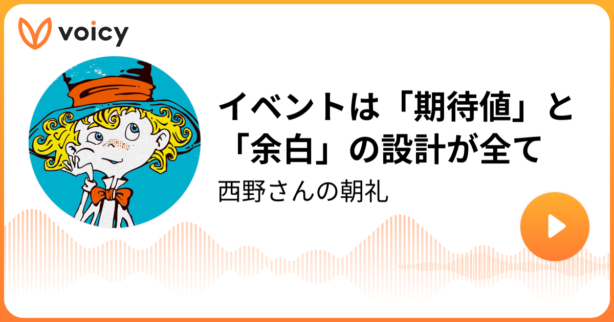 イベントは「期待値」と「余白」の設計が全て | 西野亮廣(キングコング)「西野さんの朝礼」/ Voicy - 音声プラットフォーム