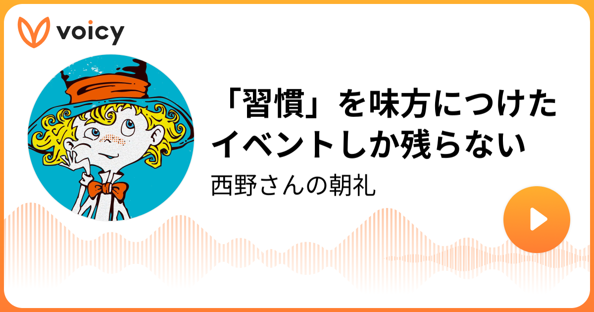「習慣」を味方につけたイベントしか残らない | 西野亮廣(キングコング)「西野さんの朝礼」/ Voicy - 音声プラットフォーム