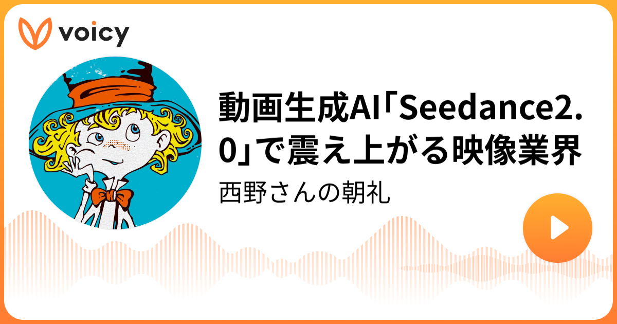 動画生成AI「Seedance2.0」で震え上がる映像業界 | 西野亮廣(キングコング)「西野さんの朝礼」/ Voicy - 音声プラットフォーム