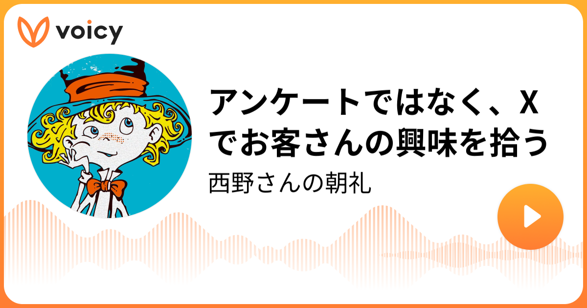 アンケートではなく、Xでお客さんの興味を拾う | 西野亮廣(キングコング)「西野さんの朝礼」/ Voicy - 音声プラットフォーム