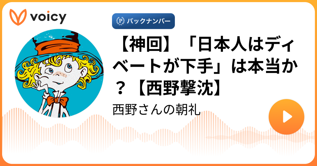 【神回】「日本人はディベートが下手」は本当か?【西野撃沈】 | 西野亮廣(キングコング)「西野さんの朝礼」/ Voicy - 音声プラットフォーム